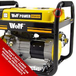 Wolf 52cc Petrol Earth Auger with 2 Extensions. Petrol Generator Wolf Portable WPB4010LR 3000w 3.75KVA Camping Power. Then you need the Wolf WPB4010LR Petrol Generator! A no-fuss, no-nonsense, powerful machine you can rely on.// Low Oil Level Shutdown // Powerful Wolf 7HP 4 stroke petrol engine // Uniquely designed motor for superior performance // 1 x 230V 13amp Socket // 1 x 230V 16amp Socket // 12V charging facility Fitted with a powerful Wolf 7HP 4 stroke petrol engine, this generator is fitted with a dependable Automatic Voltage Regulator for power output stability and all-round excellent performance. The 7HP engine that powers this generator will deliver a maximum power output of 3,000 watts and a continuous power output of 2,800 watts. It's also fitted with a 1 x 13amp BS outlet socket and 1x 230v 16amp industrial outlet for those higher power requirements and a 12V charging facility for those additional power needs.