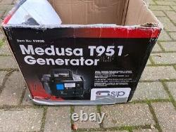 Ce générateur à essence portable et léger Medusa T951 a une puissance maximale de 780W et une puissance continue de 650W. Il est adapté pour les entreprises, les bateaux, les caravanes et les chantiers industriels. Capacité du réservoir de carburant de 4 litres, autonomie de 6,5 heures et un poids de 18,5 kg. Tension de sortie de 230V/50Hz, prise UK. Utilisé uniquement pour un petit travail de rénovation sur mon bateau.