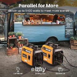 Il est facilement capable de faire fonctionner le système d'éclairage, un camping-car ou une petite maison familiale. Et il peut alimenter une large gamme d'appareils électroménagers de grande puissance tels qu'un climatiseur de 6000 BTU, des réfrigérateurs, des bouilloires, et même plus d'appareils en même temps. Lorsque le générateur est en mode ECO à 25 % de charge et est à 7 mètres du générateur, le niveau de bruit est de 58 décibels.