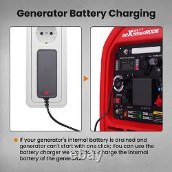 Générateur inverter (1) Manuel du propriétaire (1) Clé à bougie (1) Entonnoir à huile (1) Tournevis (1) Housse de protection pour générateur (1) Prise UK (1) Câbles parallèles pour générateur (1) Kit de soupape de décharge (1) Prise allume-cigare (1) Chargeur de batterie pour générateur (1). Première utilisation et stockage : connectez le câble de la batterie via le panneau latéral avant le premier démarrage ; déconnectez le câble de la batterie si vous stockez pendant plus d'un mois pour éviter la décharge de la batterie. Fonctionnement quotidien : éteignez toujours l'interrupteur principal sur le panneau de contrôle après utilisation. Une batterie déchargée empêchera le générateur de démarrer.