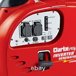 Clarke IG2200A Générateur Inverter à Essence 2.2kW - Dernière Version. DEUX PRISES DE SORTIE 230V - GÉNÉRATEUR INVERTER À ESSENCE - AUTONOMIE DE 7 HEURES. Le modèle IG2200A conforme à la norme Euro 5 de Clarke est un générateur portable puissant qui utilise la technologie inverter pour fournir une énergie pure et stable pour les ordinateurs et autres équipements sensibles. Avec une puissance maximale de 2,2 kW et une puissance continue de 2,0 kW, il est adapté à un usage professionnel et de loisirs, parfait pour une utilisation sur site, sur des stands de marché, lors de voyages en camping et en caravane, en bateau, et bien plus encore.